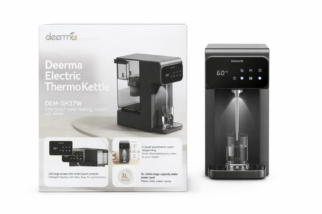 The Deerma Electric Thermo Kettle DEM-SH37W is designed to provide instant hot water quickly and conveniently for everyday use. With its one-touch rapid heating system, the kettle heats water efficiently, making it perfect for preparing tea, coffee, instant meals, and other hot beverages.