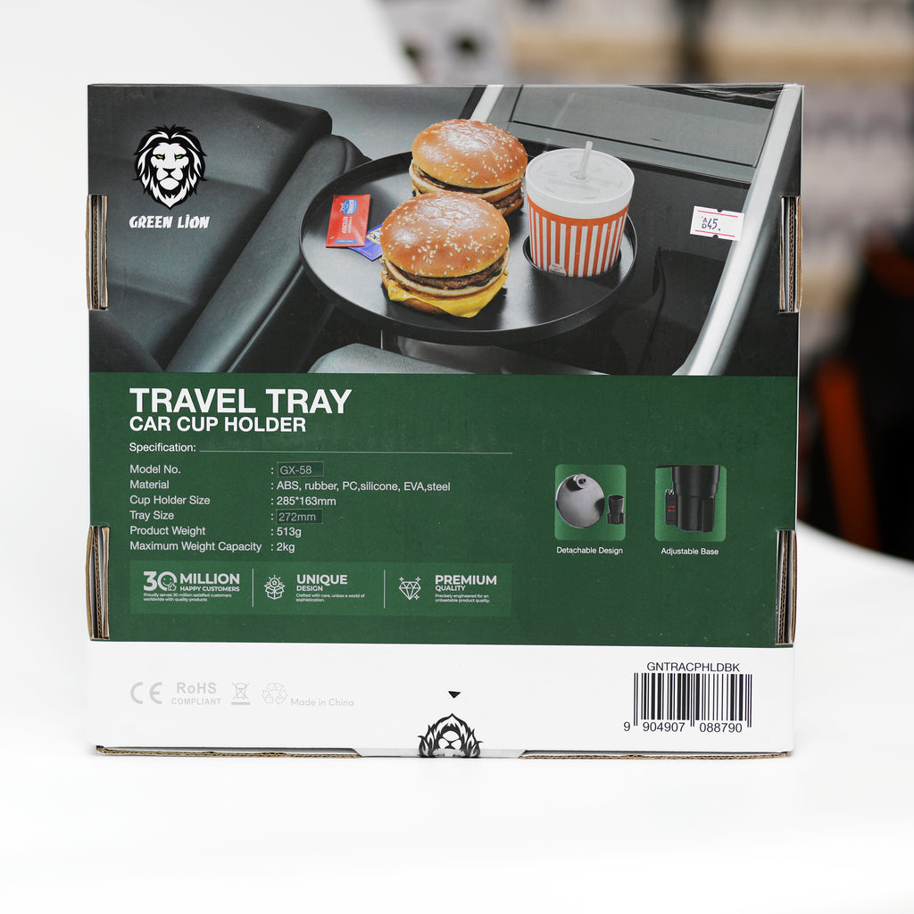 The Green Lion Travel Tray Car Cup Holder is a practical solution designed to make eating and organizing items in your car easier and more convenient. It securely fits into most standard vehicle cup holders, transforming the space into a stable tray for meals, drinks, and small accessories.
