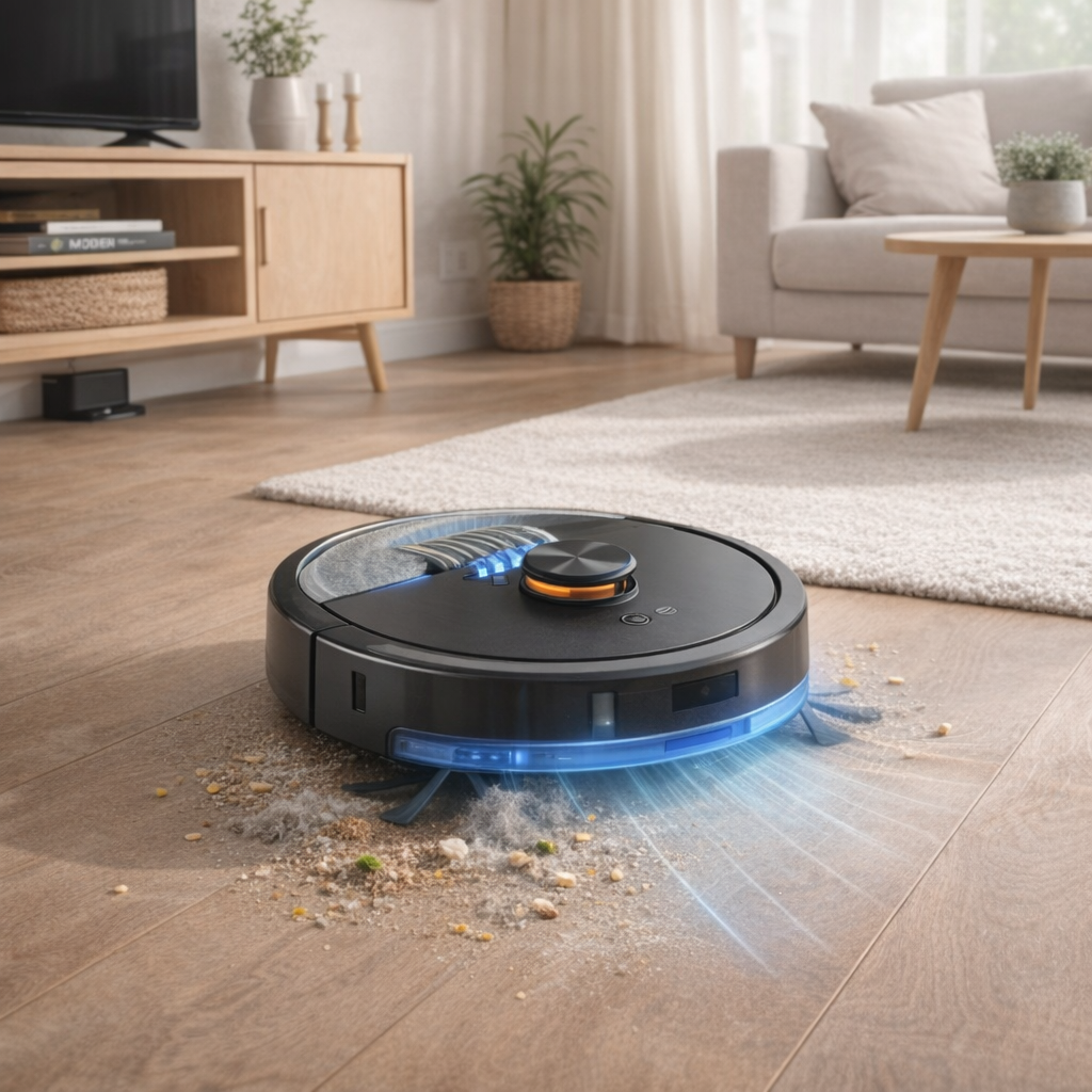 تعتمد المكنسة على نظام الملاحة الذكي LiDAR بزاوية 360° الذي يقوم بمسح المنزل وإنشاء خريطة دقيقة للمساحة، مما يساعدها على التحرك بذكاء وتجنب العوائق أثناء التنظيف.