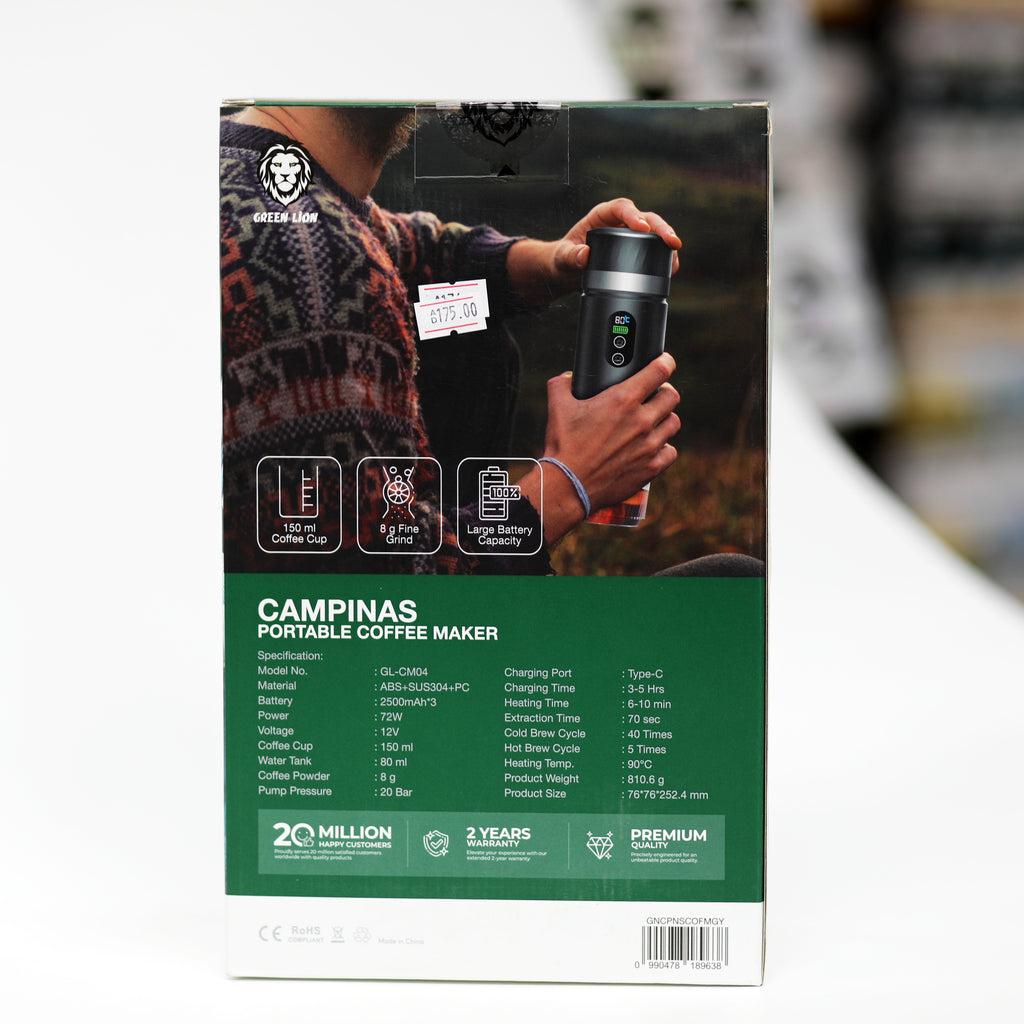تعد ماكينة القهوة المحمولة Green Lion Campinas خياراً مثالياً لعشاق القهوة الذين يرغبون في الاستمتاع بكوب إسبريسو طازج أينما كانوا. تم تصميم هذه الماكينة الصغيرة لتوفر تجربة تحضير قهوة احترافية أثناء السفر أو العمل أو الأنشطة الخارجية.