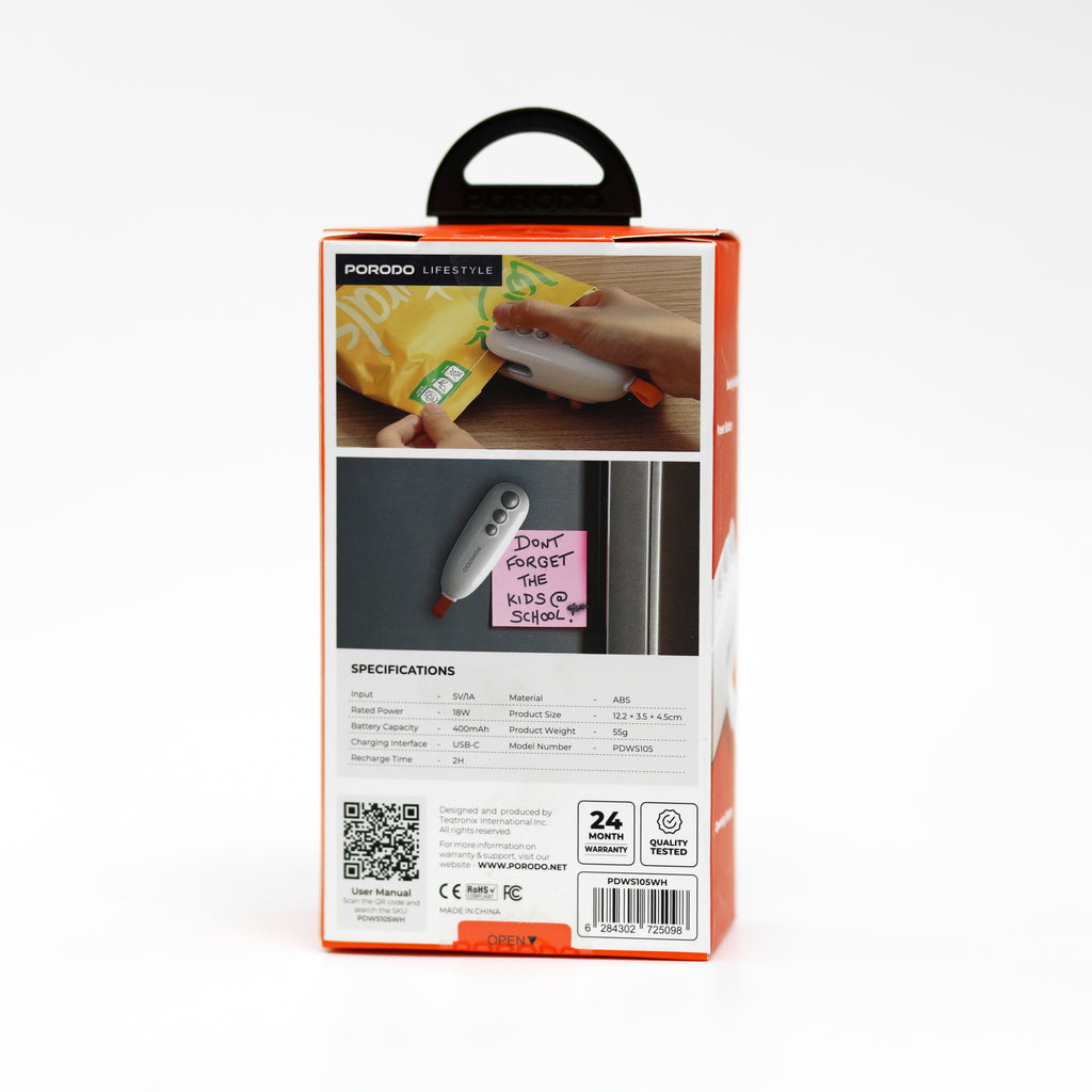 حافظ على طعامك طازجاً لفترة أطول مع Porodo 2-in-1 Magnetic Mini Bag Sealer & Cutter، وهو جهاز صغير وعملي مصمم لإغلاق وفتح الأكياس البلاستيكية بسهولة في المطبخ أو أثناء التنقل.