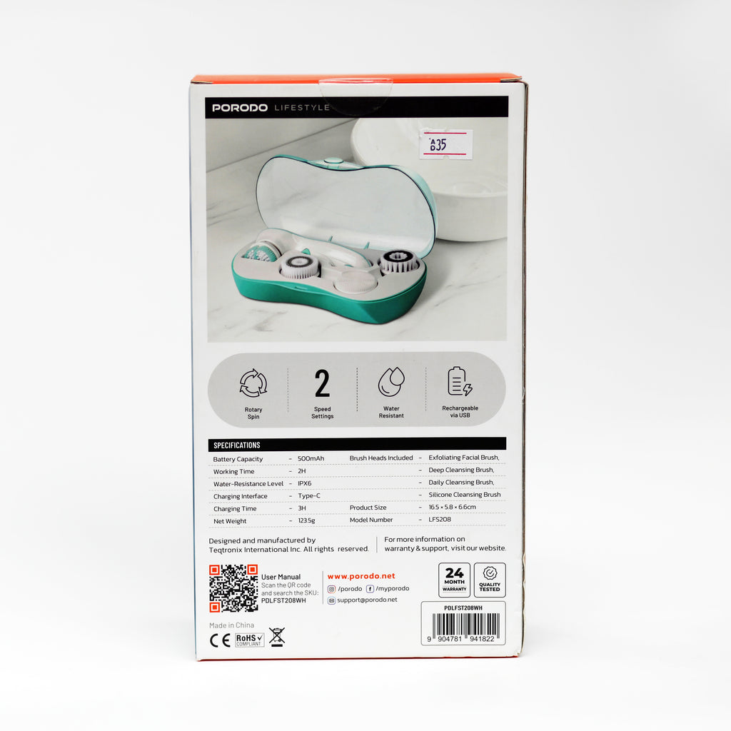 احصل على بشرة أكثر نظافة ونضارة مع Porodo 4-in-1 Facial Cleansing Brush، وهي أداة متطورة للعناية بالبشرة مصممة لتوفير تنظيف عميق وتقشير لطيف للبشرة في المنزل.