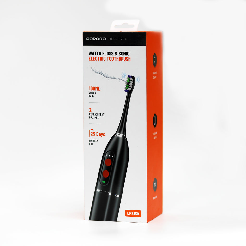 احصل على عناية متكاملة بصحة الفم والأسنان مع Porodo Water Floss & Sonic Electric Toothbrush، وهو جهاز متطور يجمع بين فرشاة الأسنان الكهربائية بتقنية Sonic وميزة الخيط المائي (Water Flosser) في جهاز واحد لتوفير تنظيف شامل للأسنان واللثة.