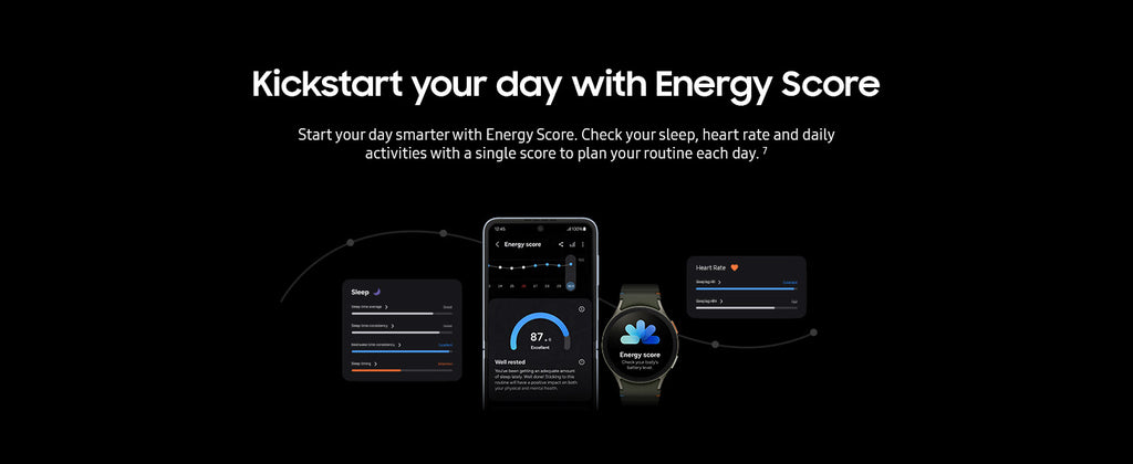 تقدم الساعة ميزة Energy Score الذكية من سامسونج التي تقوم بتحليل بيانات النوم ومعدل ضربات القلب والنشاط اليومي لتمنحك تقييمًا شاملًا لمستوى طاقتك، مما يساعدك على التخطيط ليومك بشكل أفضل.